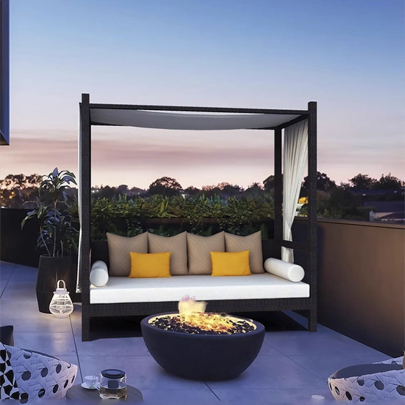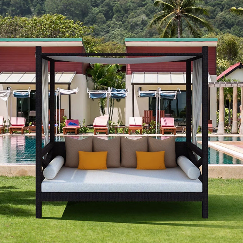 戶外躺床陽臺沙灘椅休閒室外庭院躺椅別墅游泳池沙發床雙人藤編椅 TCH00477