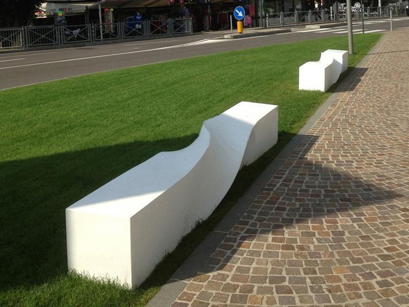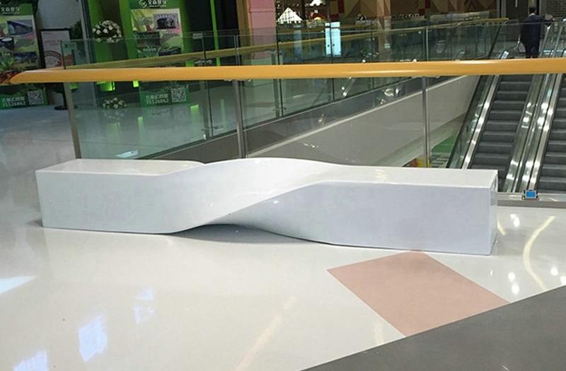 純白玻璃鋼一體塑形,坐面自然高低起伏,兼具視覺引導與分座功能