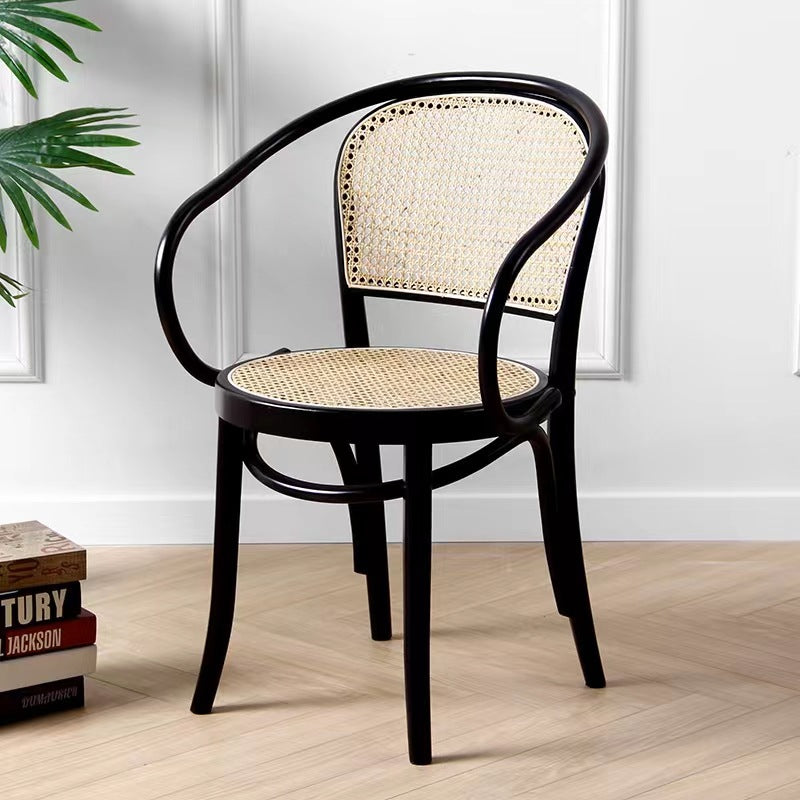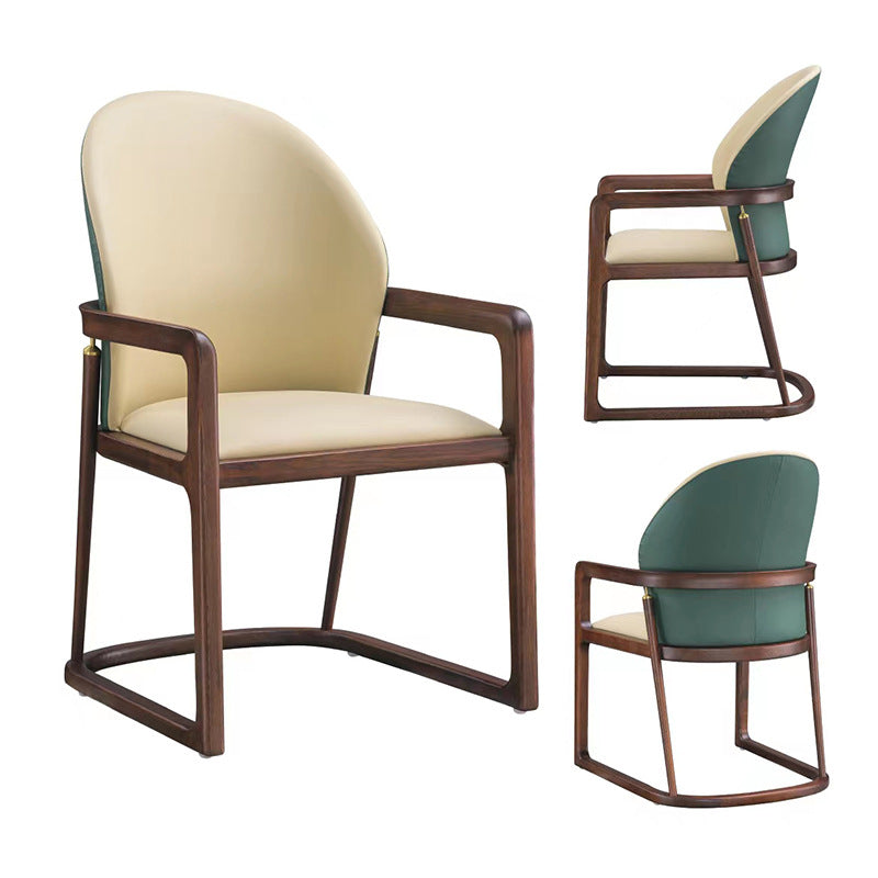 白蠟木實木餐椅 簡約設計師帶扶手靠背椅西餐廳實木餐椅 TCH00340-1