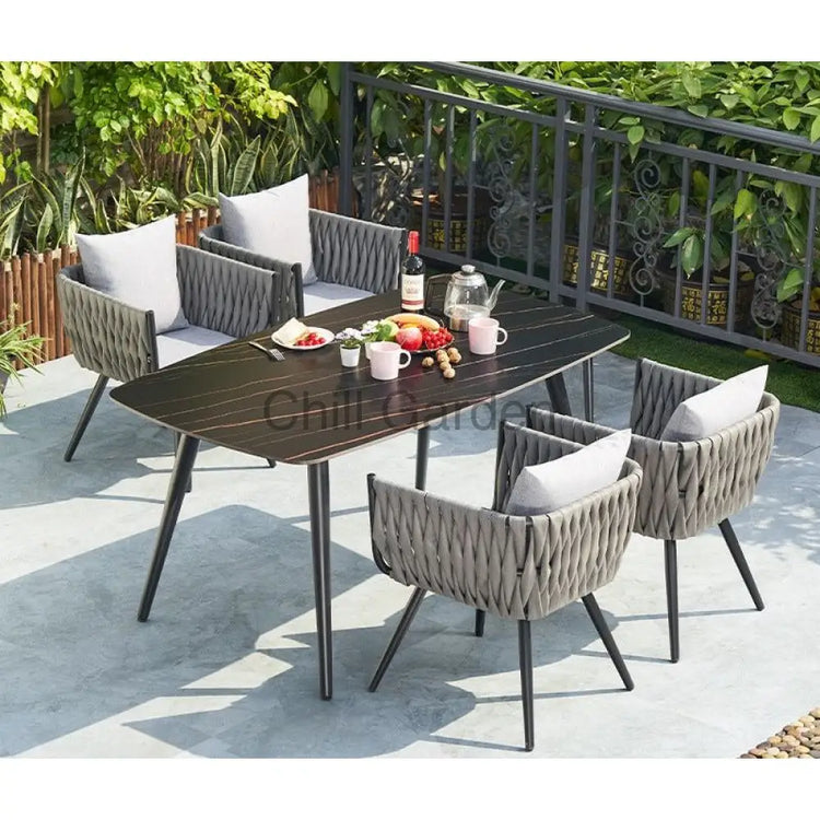 Material: hemp rope webbing, aluminum alloy, Guchen cushion, slate (coffee table)