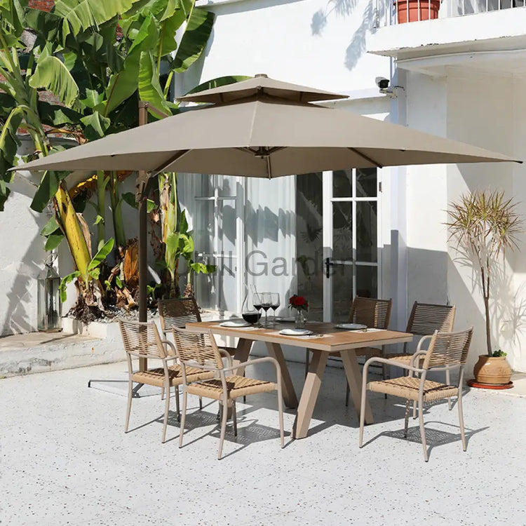 Material: PE rattan weaving, aluminum alloy, technical wood (Taiwan)