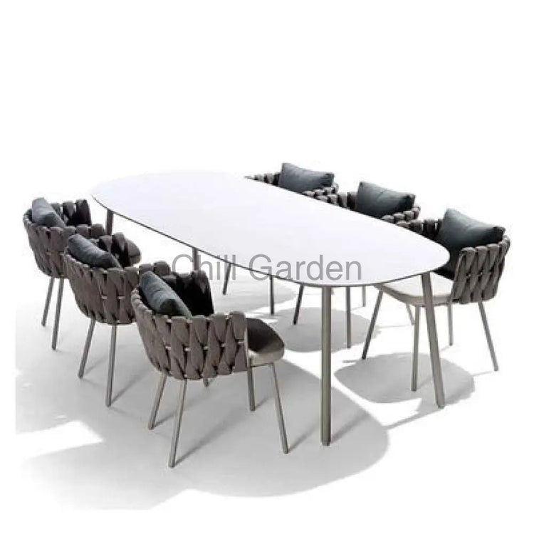 Material: PE ribbon, aluminum alloy, Guchen cushion, marble (table)