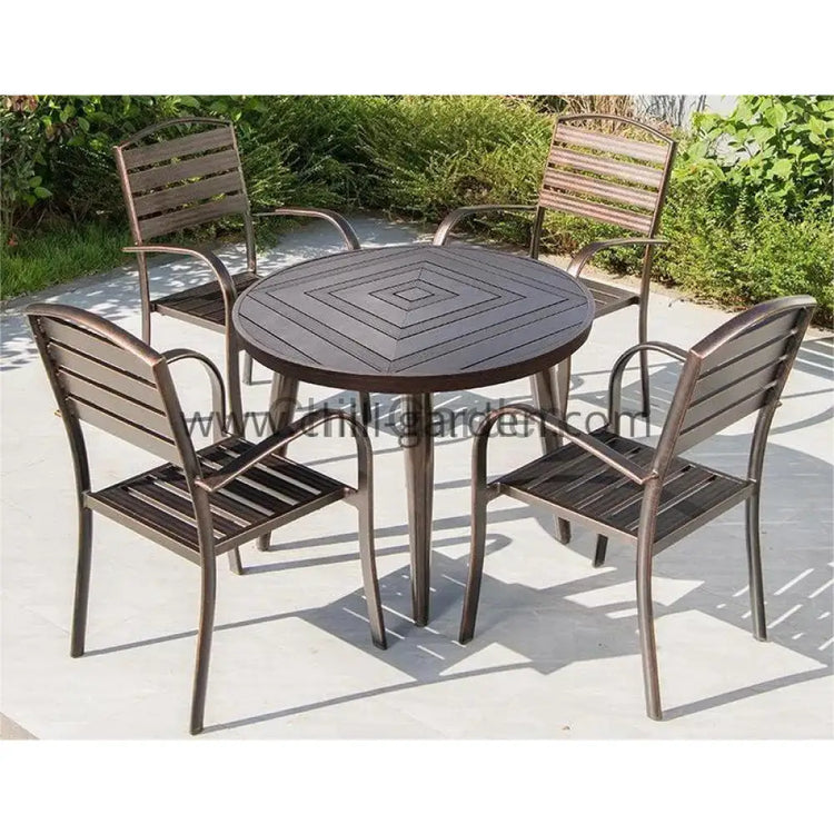90CM Round Back Pattern Aluminum Alloy Dining Chair Set︳Outdoor Furniture Dining Table