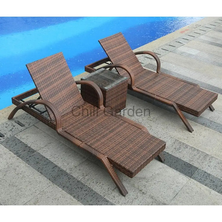 兩張單人躺床+一張茶几