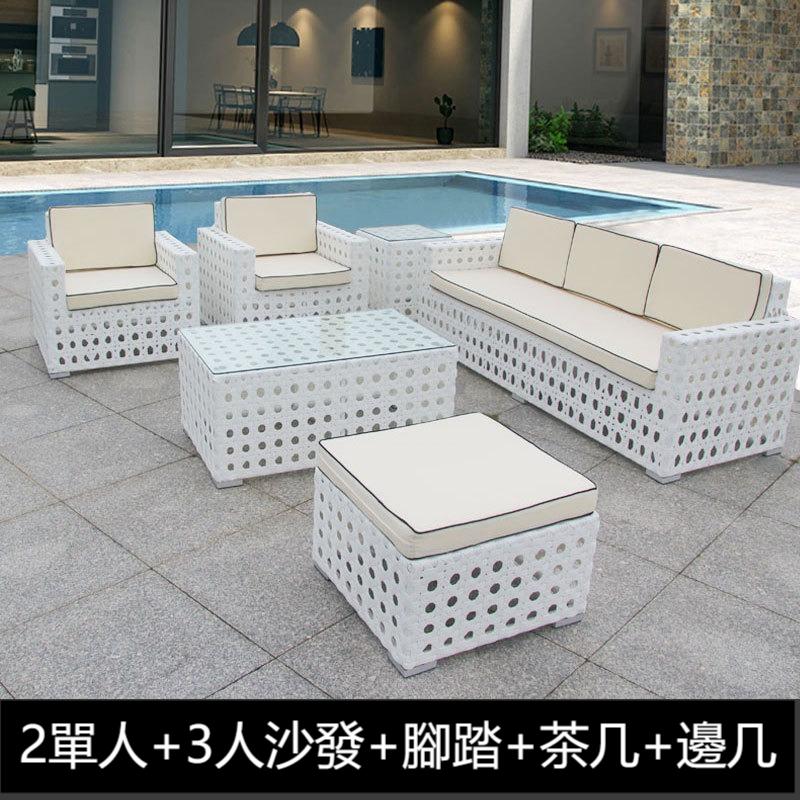 -兩張單人沙發+一張三人沙發+一張茶几+一張腳踏+一張邊几
