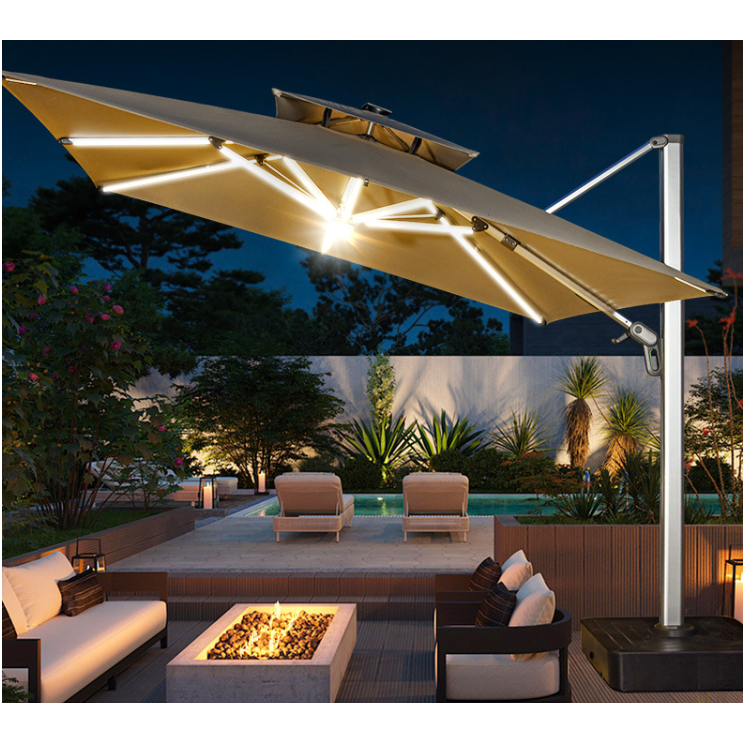 加強 傘骨LED燈 內嵌式把手 3米 方形 羅馬傘 太陽傘 注水底座 SUN014