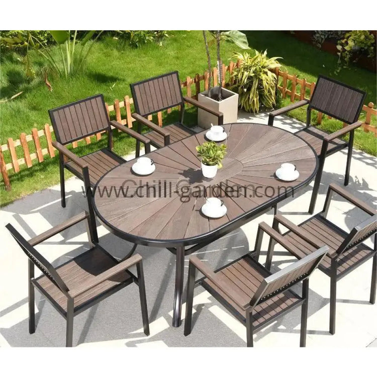 160CM 橢圓形 太陽紋 環保木 餐桌椅套裝 ︳戶外傢俬 陽台 庭園 TC010